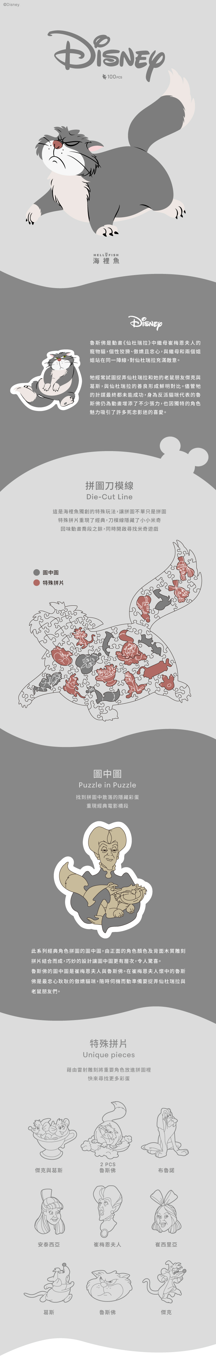 身為反派貓咪代表的魯斯佛與善良的仙杜瑞拉形成鮮明對比,其獨特的角色魅力吸引了許多死忠影迷的喜愛。