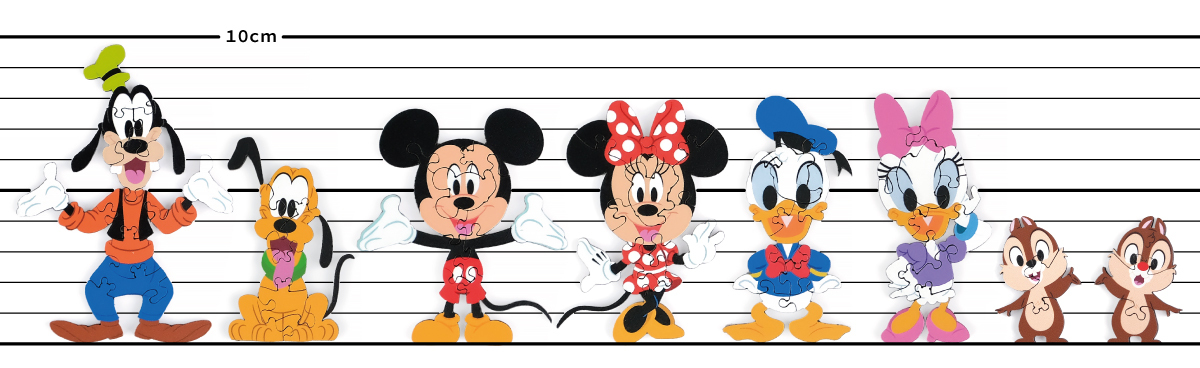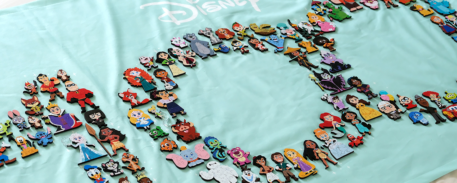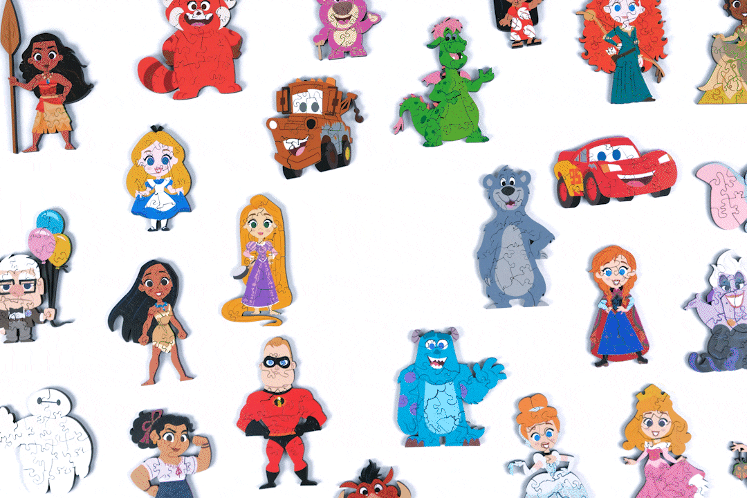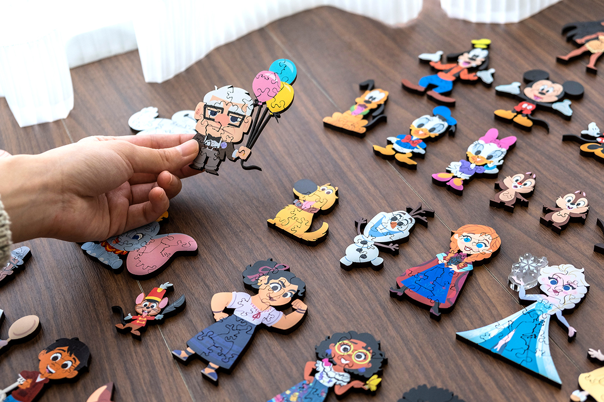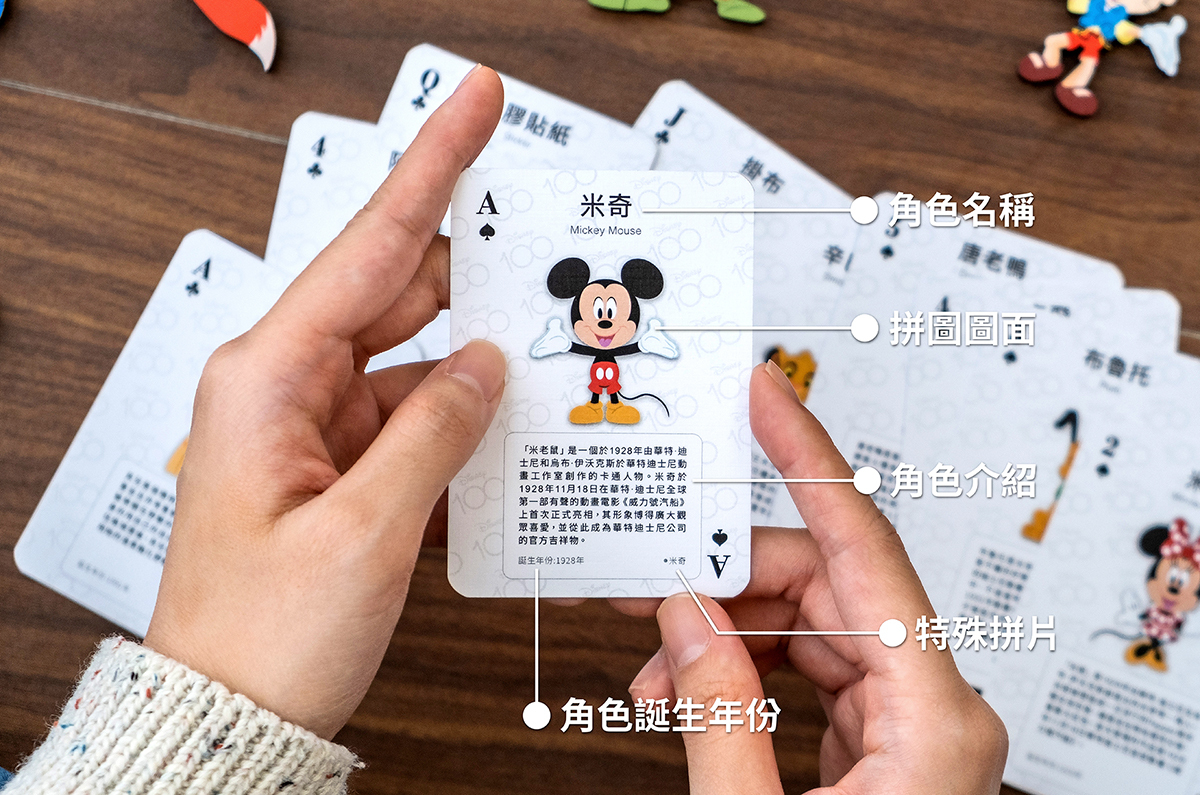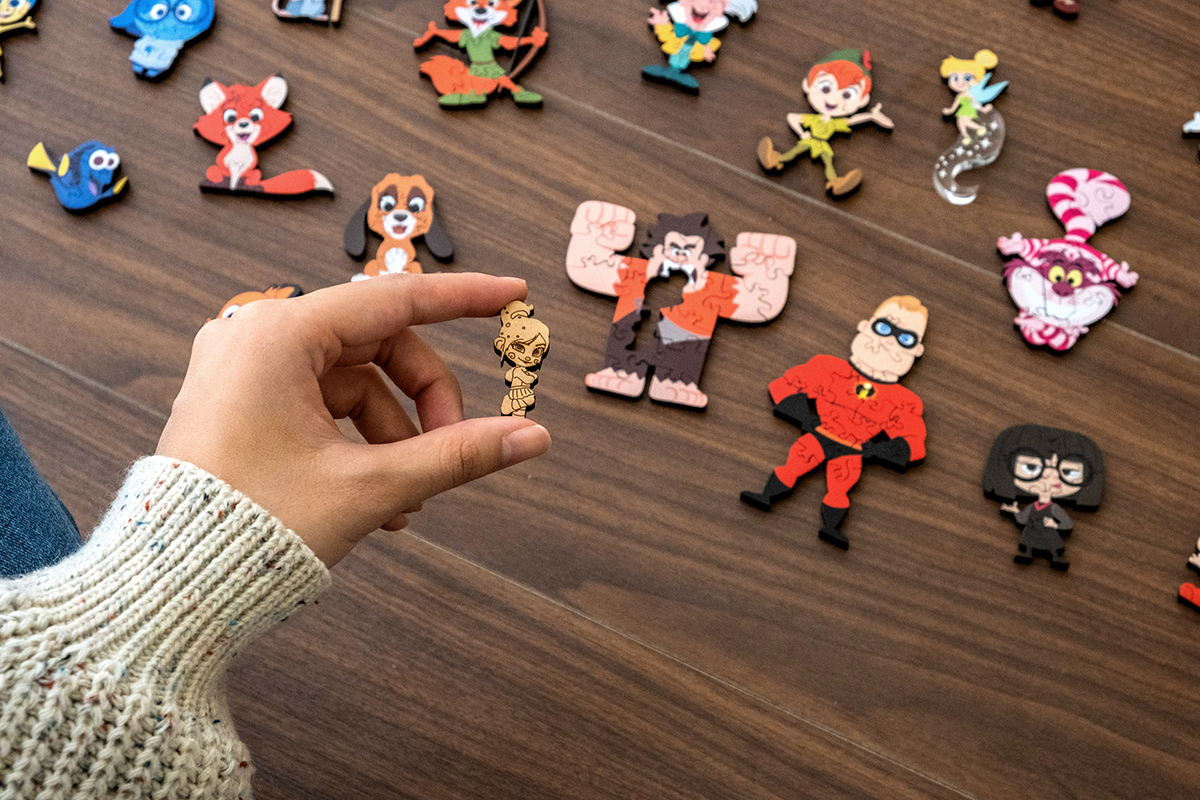 《迪士尼百年慶典木質拼圖》中100款經典角色拼圖除了擁有可愛的造型,重視細節的海裡魚克服種種困難,角色比例也如實呈現在拼圖上,大小造型不一的各經典角色設計在所有拼圖完成後彷彿也活了起來。