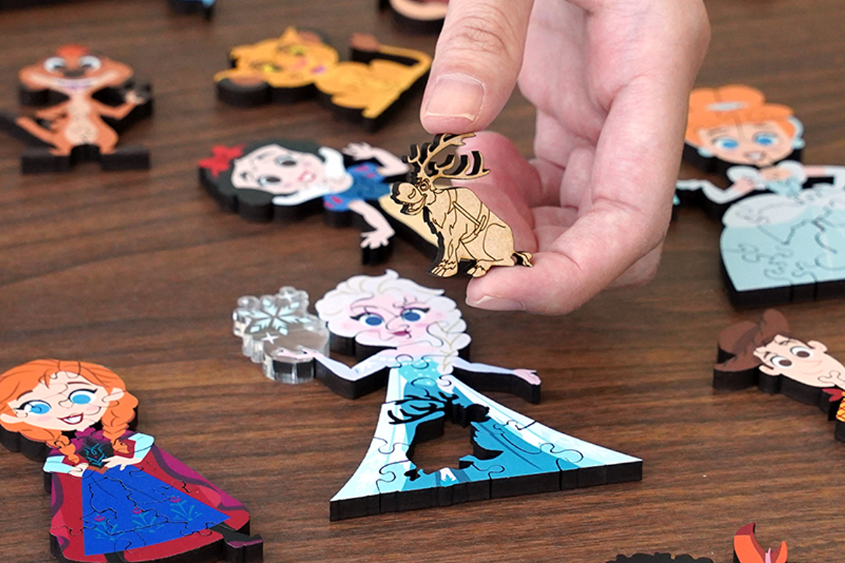 海裡魚木質拼圖以高品質雷射切割技術及高質感UV印刷聞名,堅持以最高標準製作自家產品。《天外奇蹟》卡爾爺爺造型手裡氣球線根根分明;《小飛俠》裡的小叮噹腳下魔法亮粉是用亮晶晶的壓克力製作;《羅賓漢》中羅賓漢拼圖手裡的弓箭精巧到工廠難以製作。為了還原角色的特色,海裡魚這次也是卯足全力!