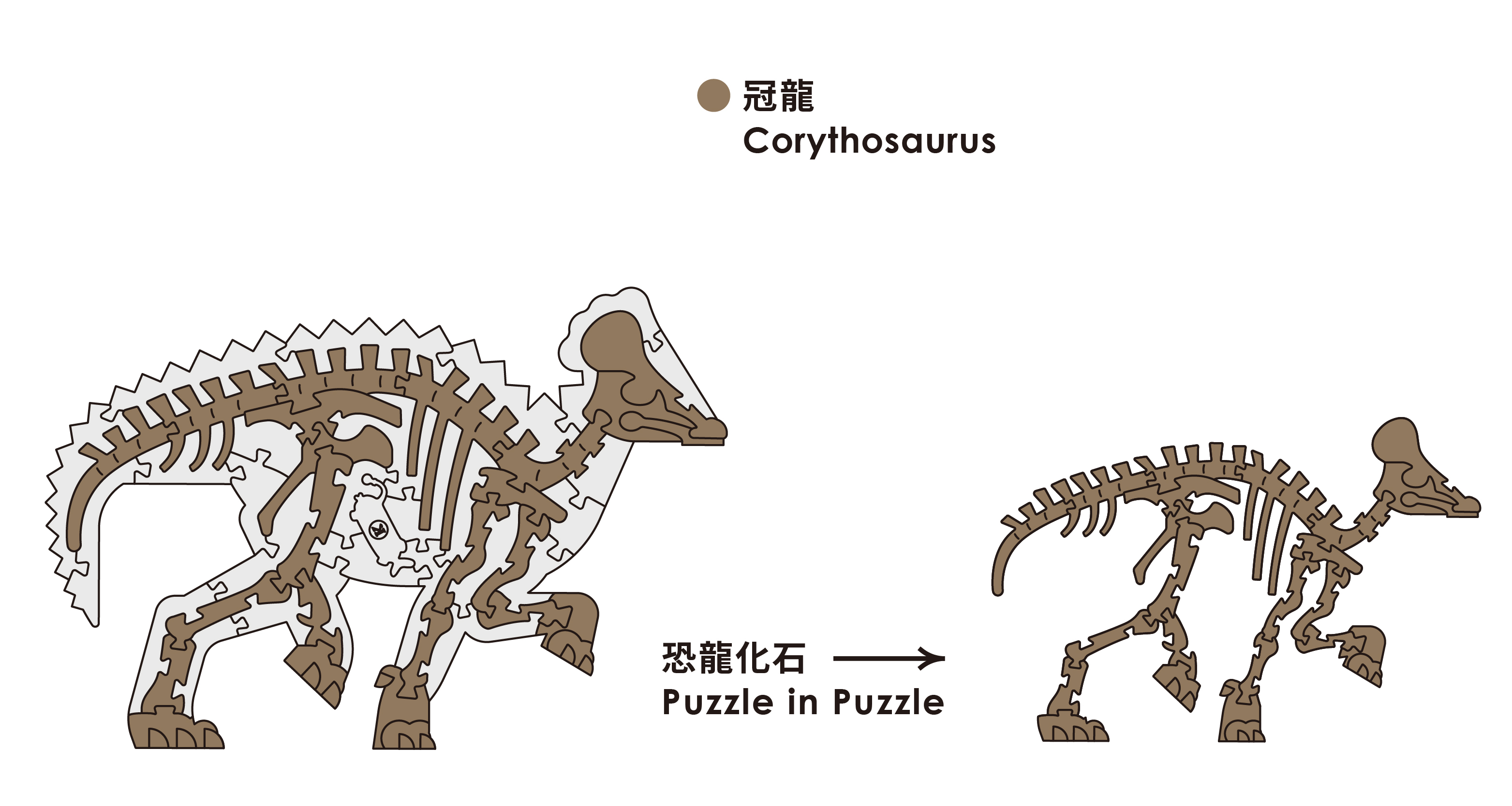 以流暢的刀模線條巧妙結合拼圖與恐龍化石,拼圖過程中彷彿回到白堊紀時期恐龍統治的世界