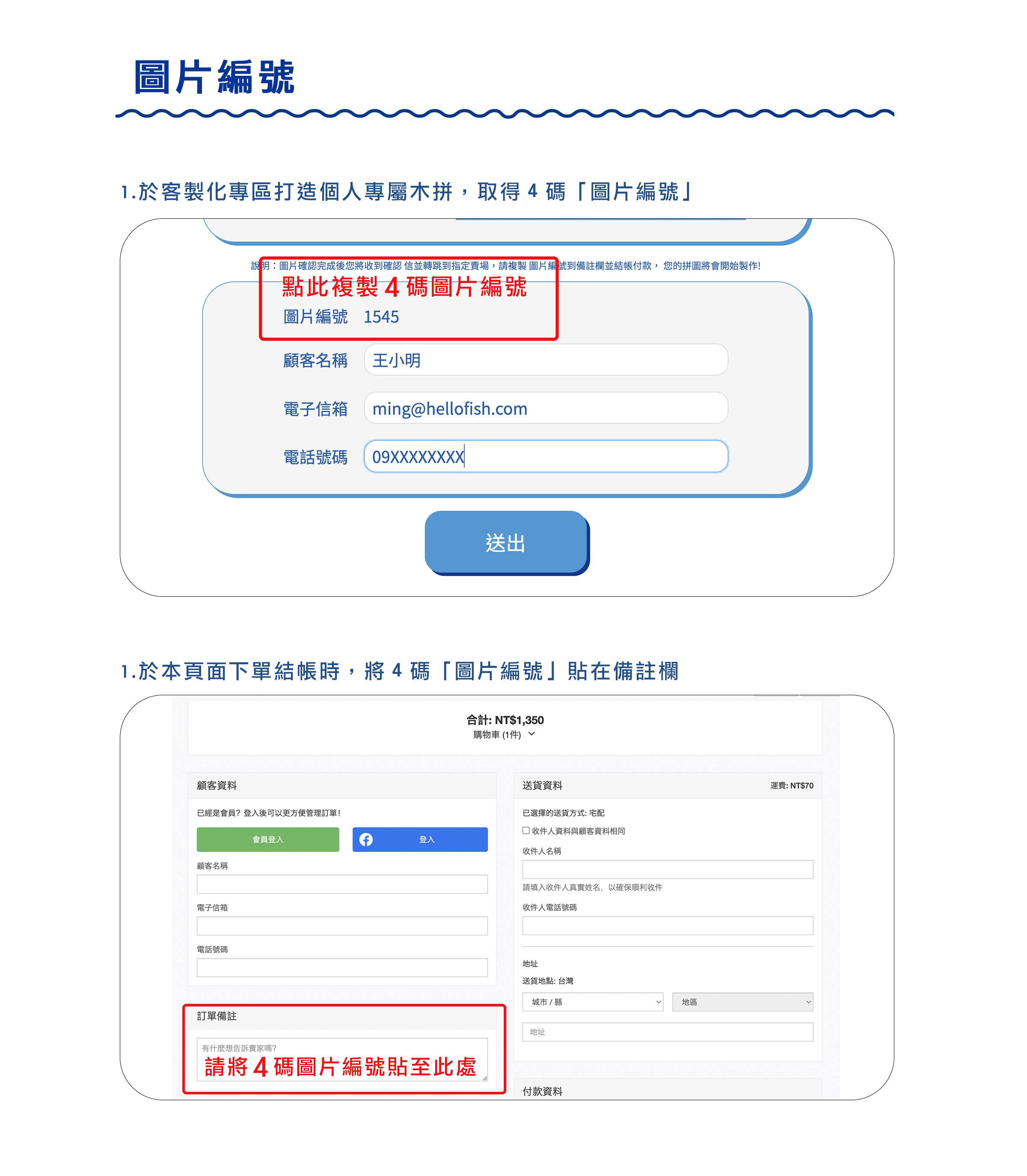 上傳圖片及付款完成(將圖片編號4碼貼於備註欄)後的7工作天內將客製化木拼寄出,寄出後約1-3工作天送達指定地址或門市。