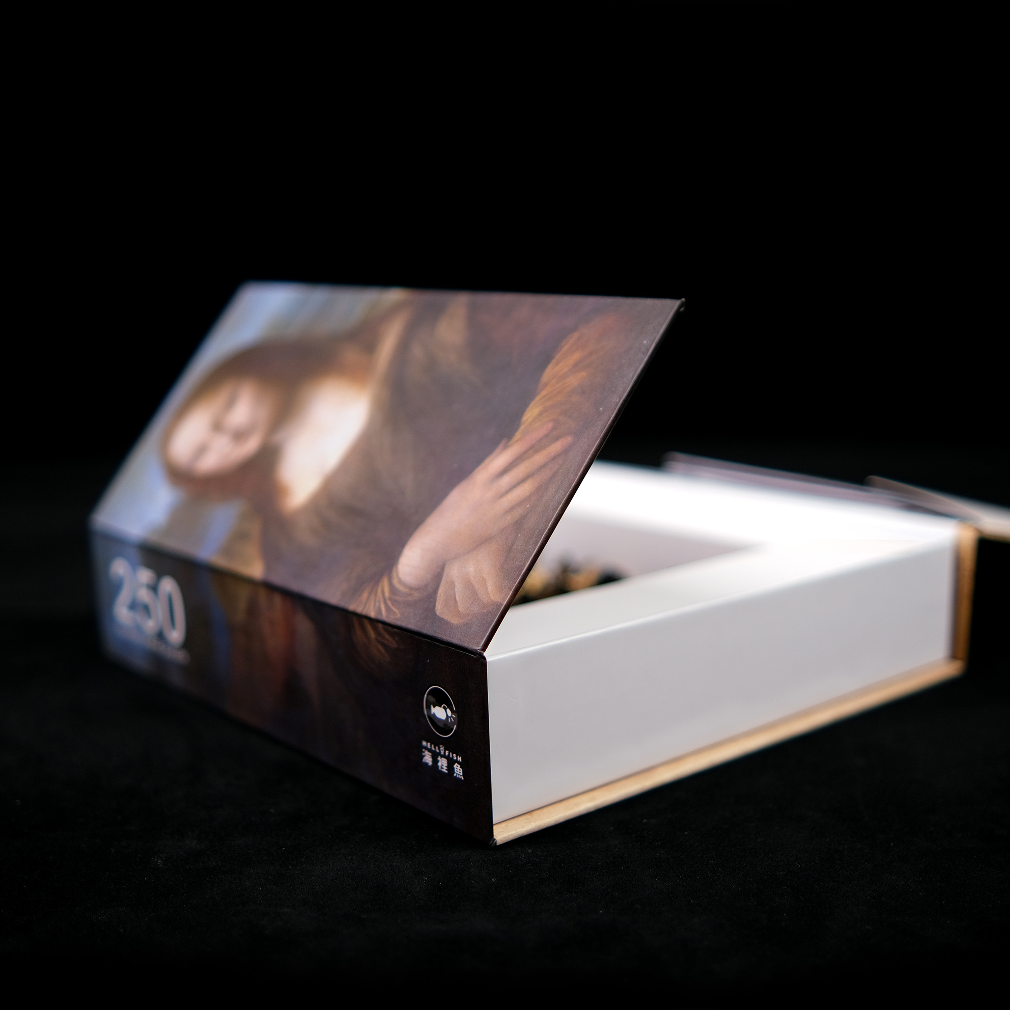 打開盒子,就像推開一扇通往博物館的門,映入眼簾的是大師的介紹、經典名言、拼圖本體、說明書與配件接著出現,還放了一個小秘密在盒子裡,等著你來尋找!