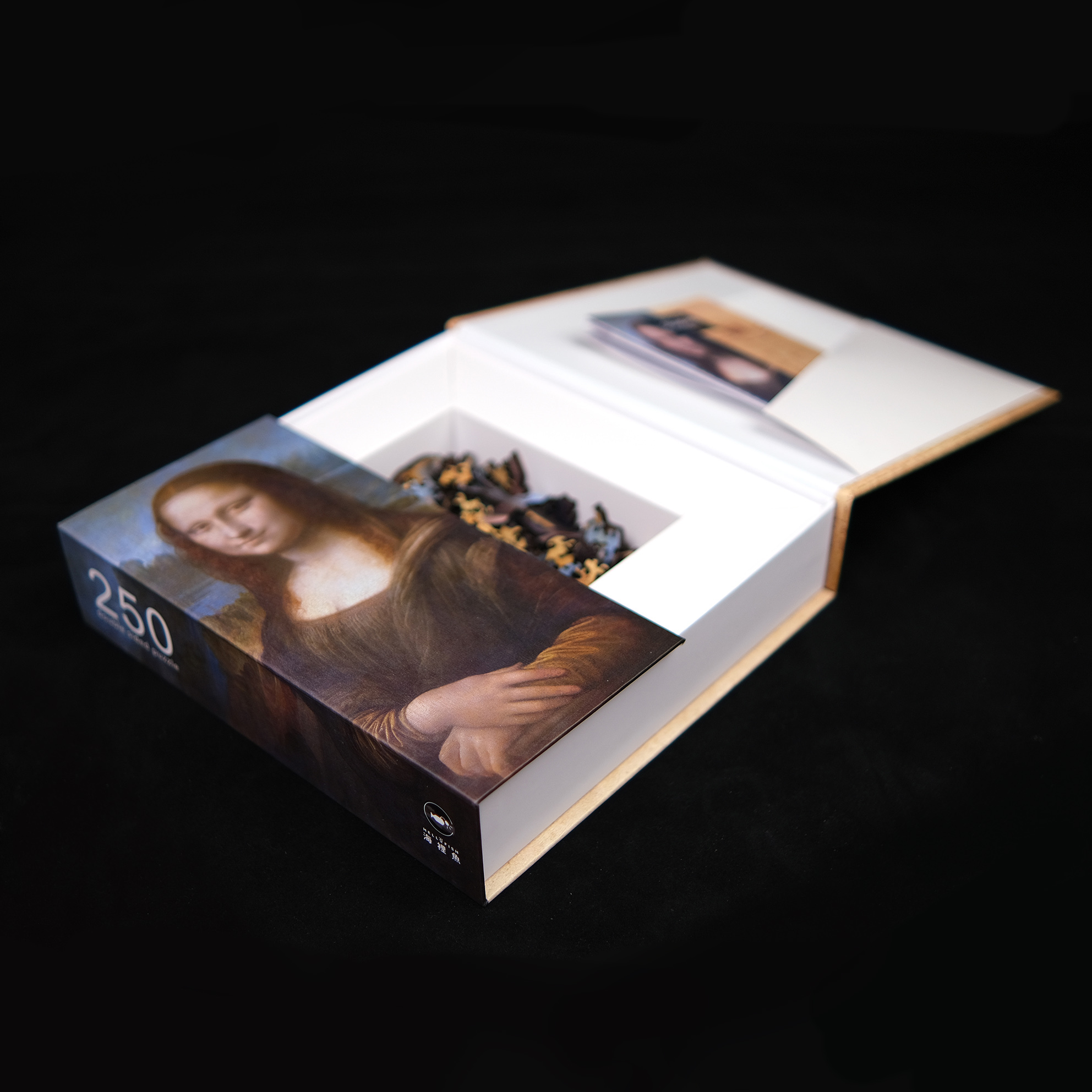 產品內容:木質拼圖250片、說明書 x 1、立體展覽卡 x 1、補缺片卡、黏黏筆 x 1、書型磁吸禮盒 x 1