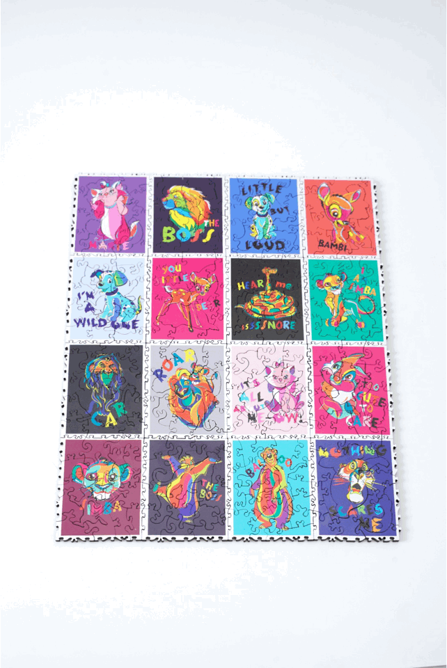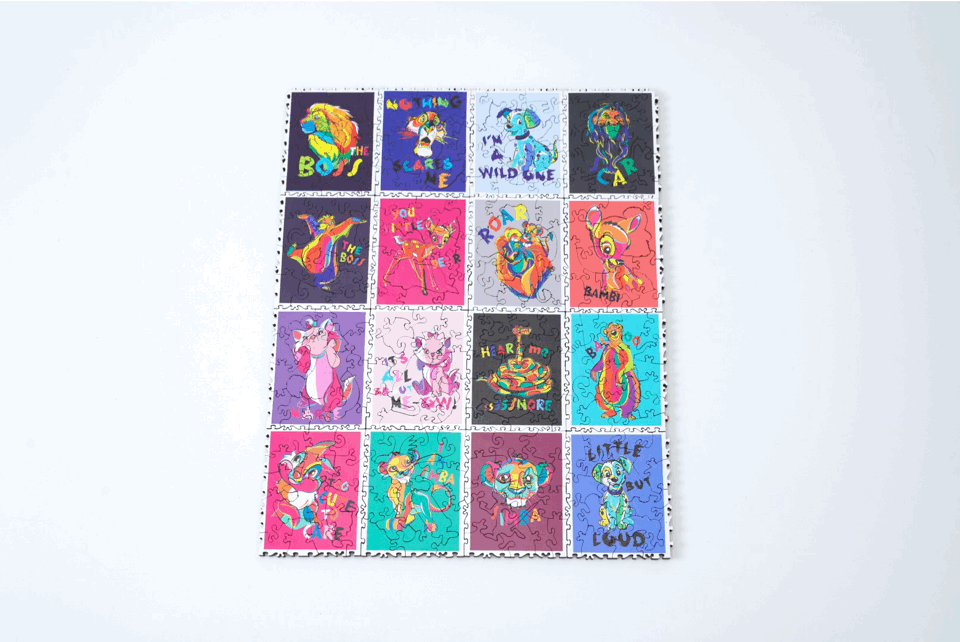 迪士尼的動畫長片家喻戶曉,從1937年的白雪公主至今已發表60部動畫長片,耳熟能詳的配樂與充滿魔法的童話故事深植大家心中,這次所選的主角來自五部經典動畫:小鹿斑比、101忠狗、森林王子、貓兒歷險記與獅子王。用色大膽的筆刷帶來全新的活潑感受,一起闖進迪士尼的奇幻世界吧!