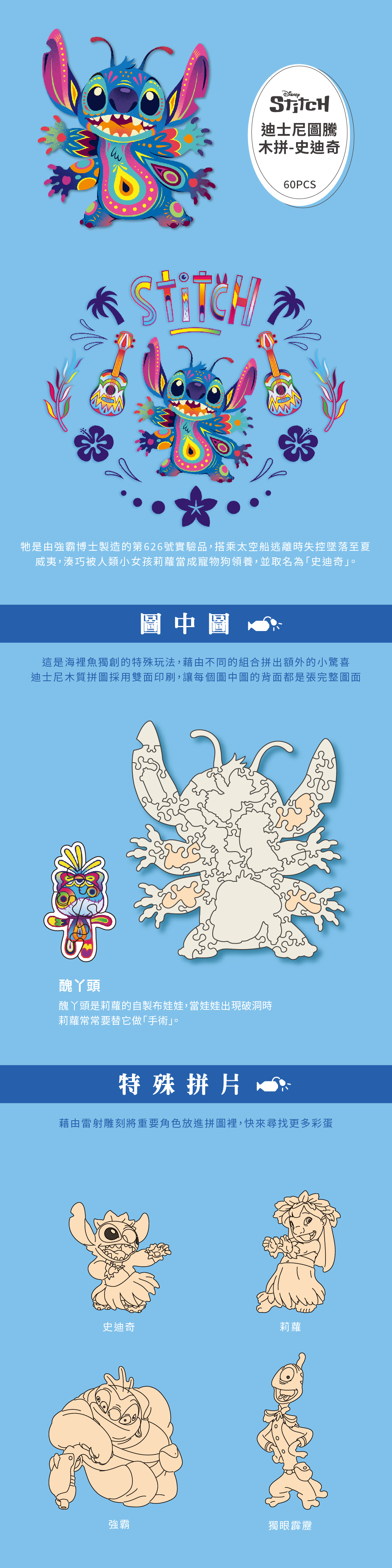 品名 : 迪士尼圖騰木拼-史迪奇 Disney Totem Wodden Puzzle - Stitch
