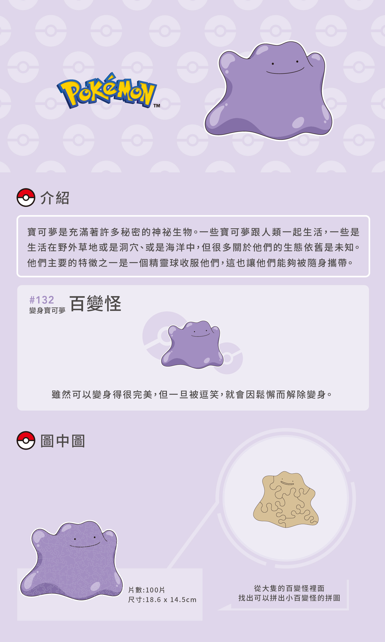 寶可夢官方授權木質拼圖,高品質切割與印刷完美呈現經典角色,百變怪睡覺時為了防止被敵人攻擊會變身成石頭!