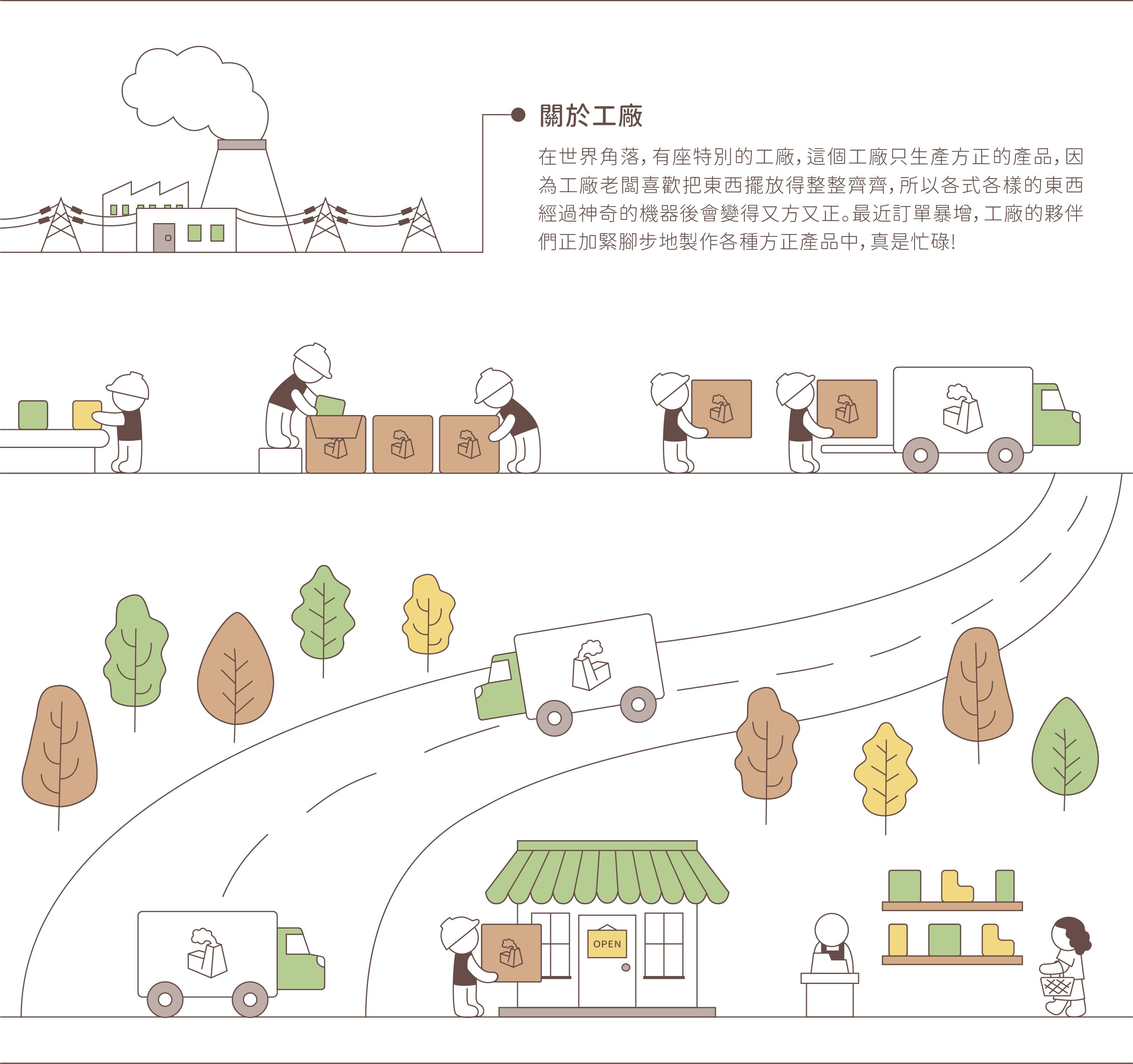 在世界角落,有座特別的工廠,這個工廠只生產方正的產品,因為工廠老闆喜歡把東西擺放得整整齊齊...
