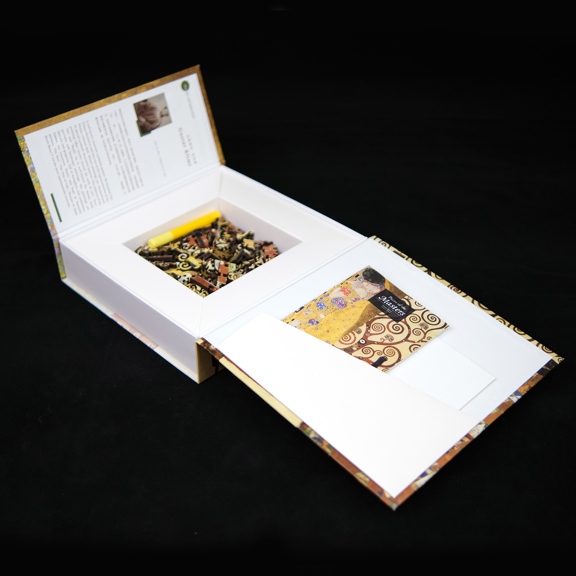打開盒子,就像推開一扇通往博物館的門,映入眼簾的是大師的介紹、經典名言、拼圖本體、說明書與配件接著出現,還放了一個小秘密在盒子裡,等著你來尋找!