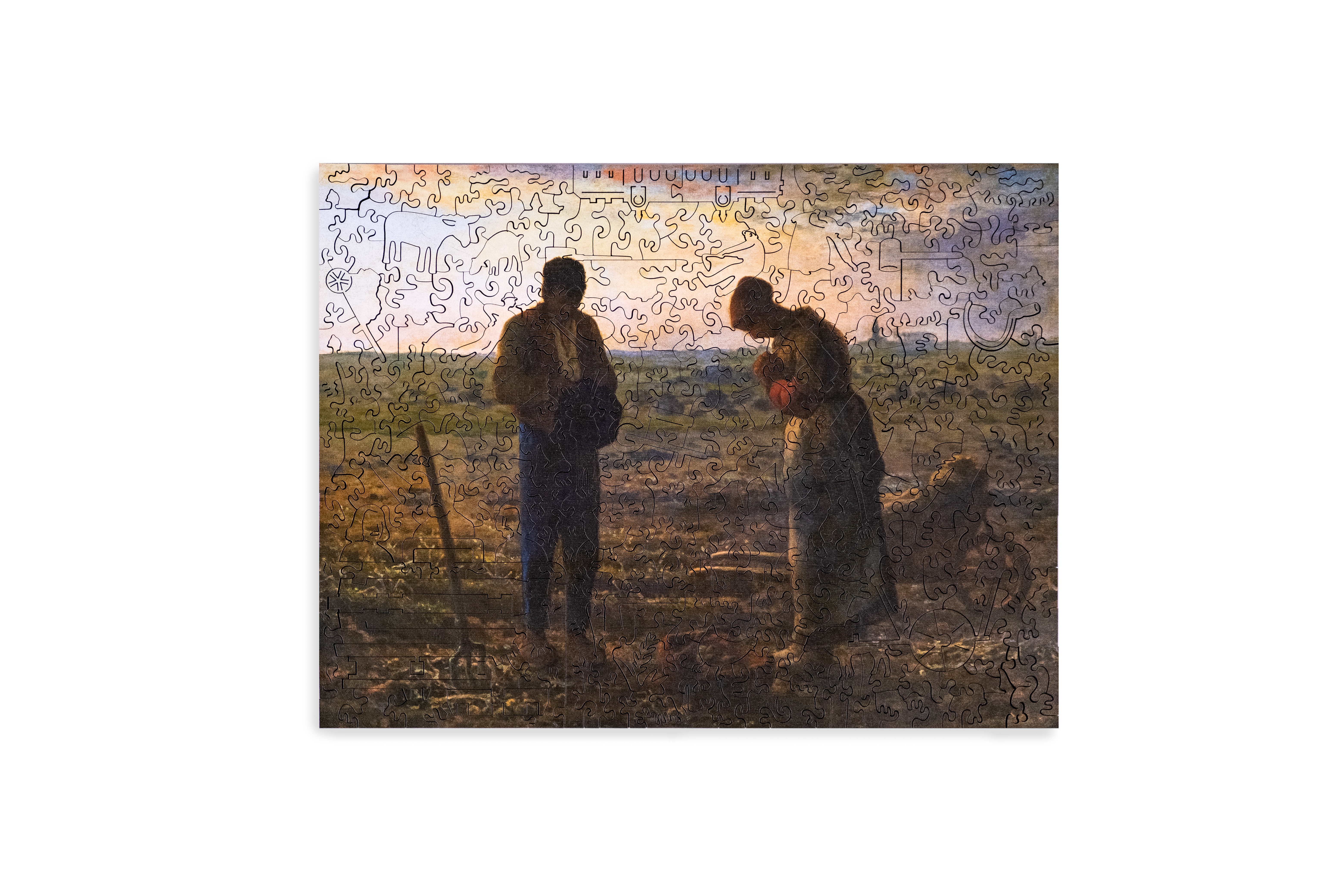 文藝復興時期什麼都會的達文西、點描派的佼佼者秀拉、喜歡裸女跟貓咪的克林姆、神經執著又憂鬱的梵谷、在設計界裡揮灑出獨特風格的蒙德里安、以端莊優雅的女性人物形象和唯美的線條聞名的慕夏、以寫實手法描繪的鄉村風俗畫聞名的米勒,七位大師的特色與知名作品都在這盒拼圖裡,一邊玩拼圖一邊看著說明書,帶你深入遨遊在藝術世界。