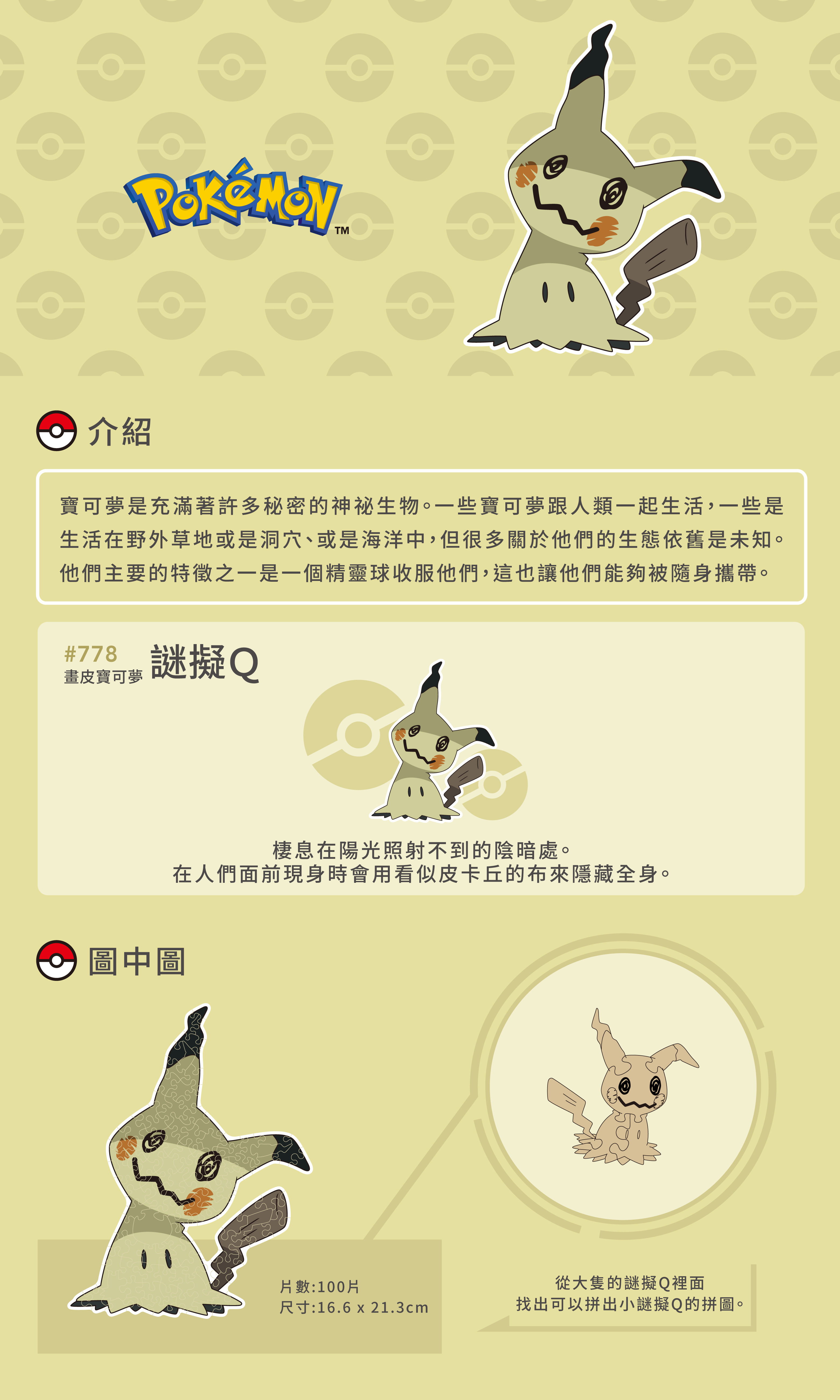 寶可夢官方授權木質拼圖,高品質切割與印刷完美呈現經典角色,據説看見謎擬Q的真面目後會怪病纏身,因此絕對不能觀看其真身。