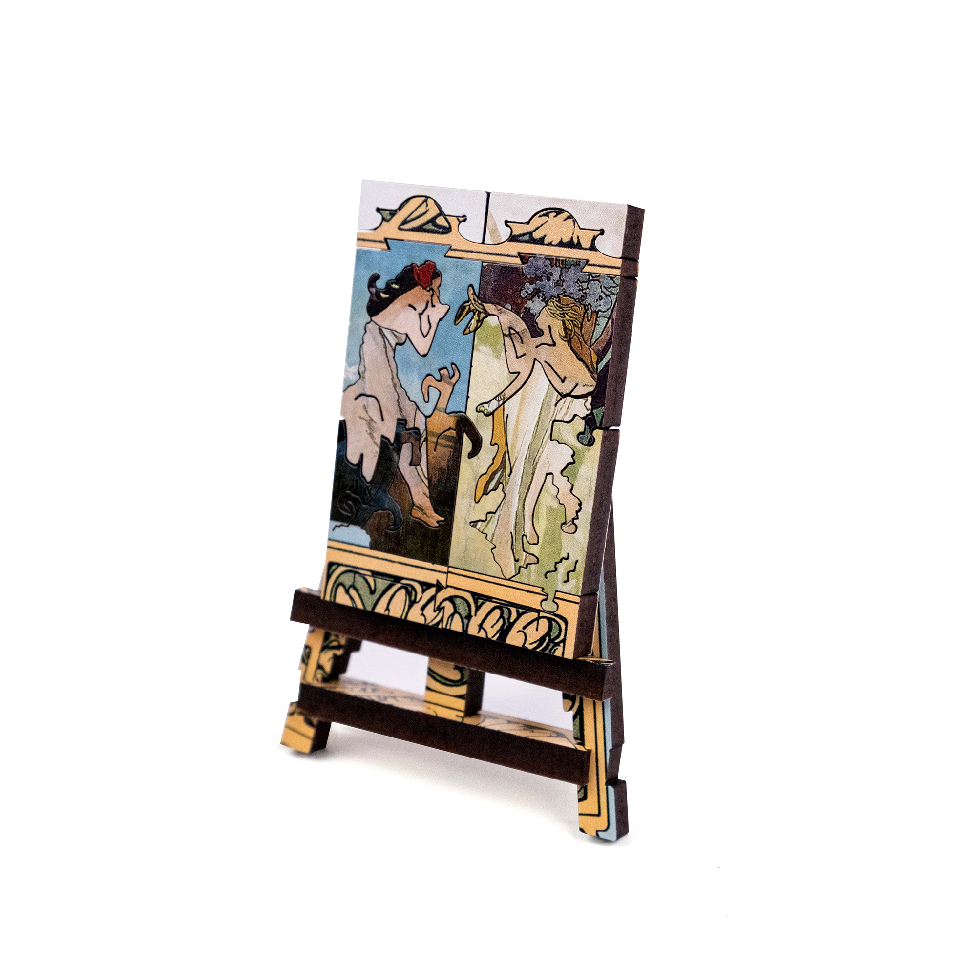 完成圖中圖之後可以鑲嵌在展覽卡上(隨盒附贈)。當你蒐集了夠多的展覽卡,桌上儼然成為一場迷你的藝術展。