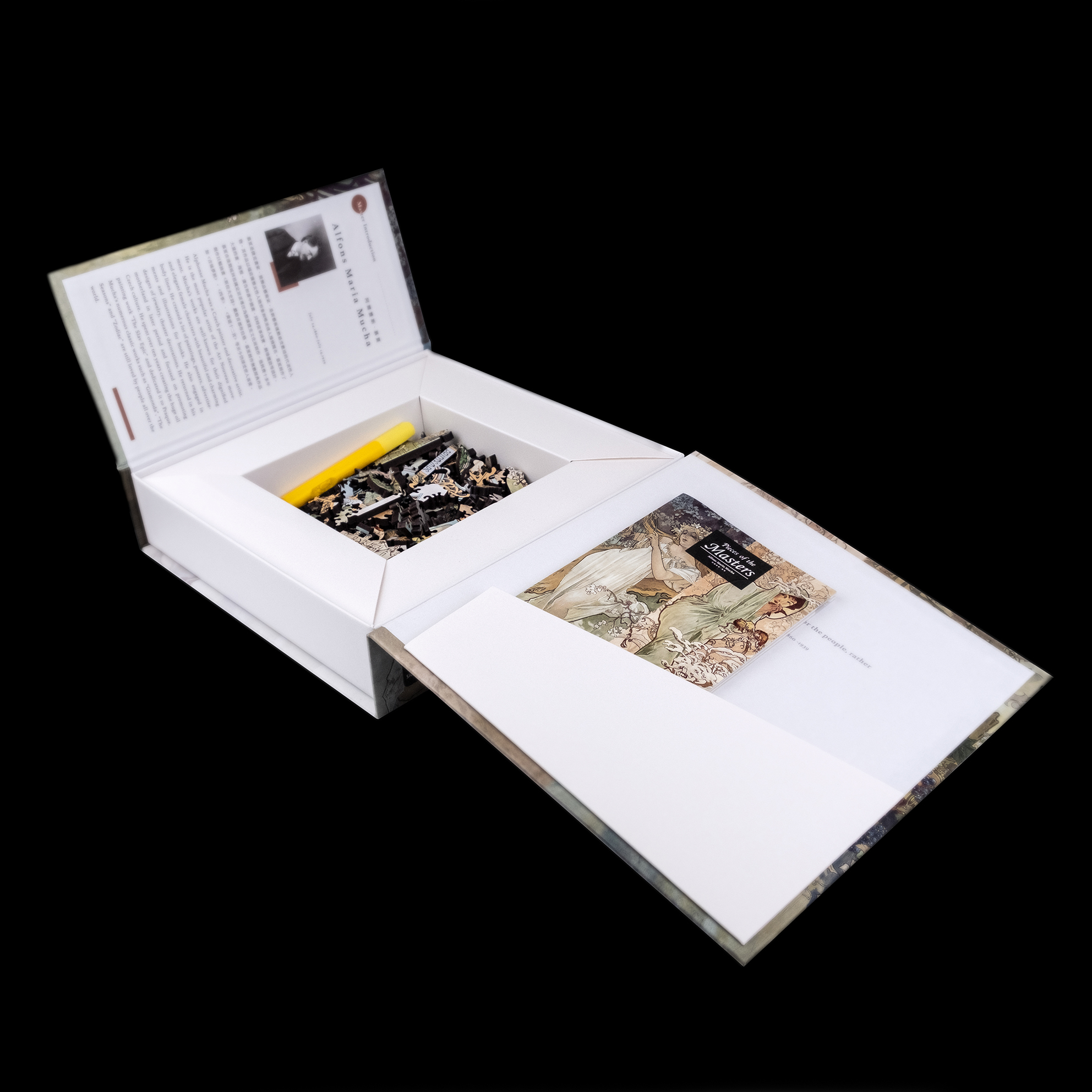 打開盒子,就像推開一扇通往博物館的門,映入眼簾的是大師的介紹、經典名言、拼圖本體、說明書與配件接著出現,還放了一個小秘密在盒子裡,等著你來尋找!