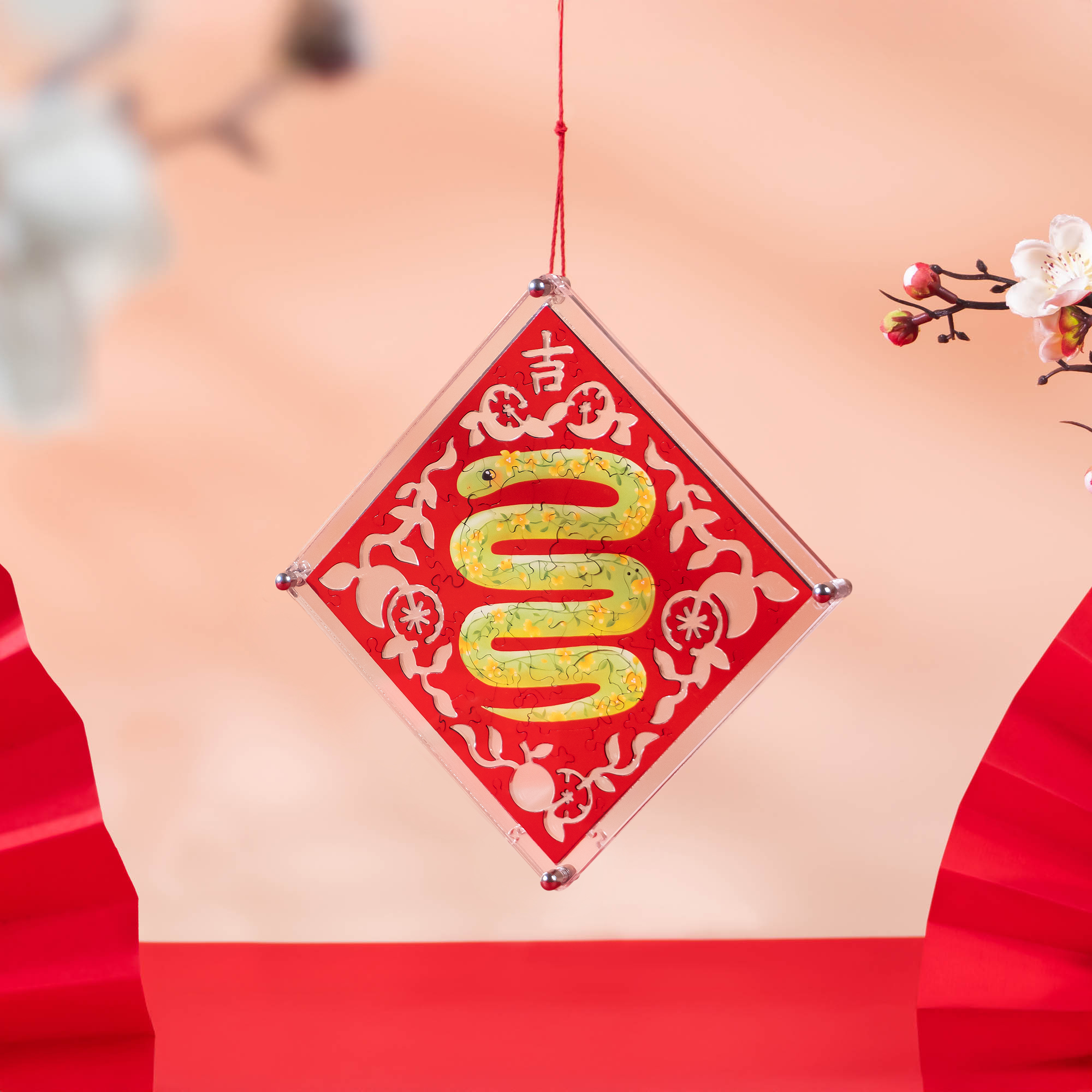 象徵吉祥的青蛇木質拼圖,願你平平安安,抽籤都大吉.