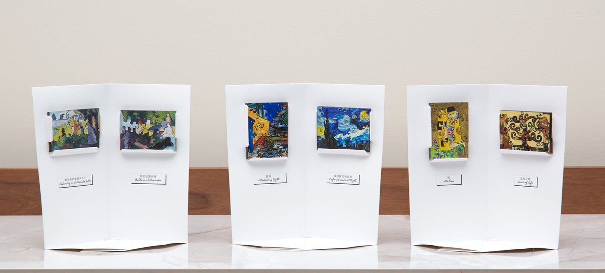 完成圖中圖之後可以鑲嵌在展覽卡上(隨盒附贈)。當你蒐集了夠多的展覽卡,桌上儼然成為一場迷你的藝術展。