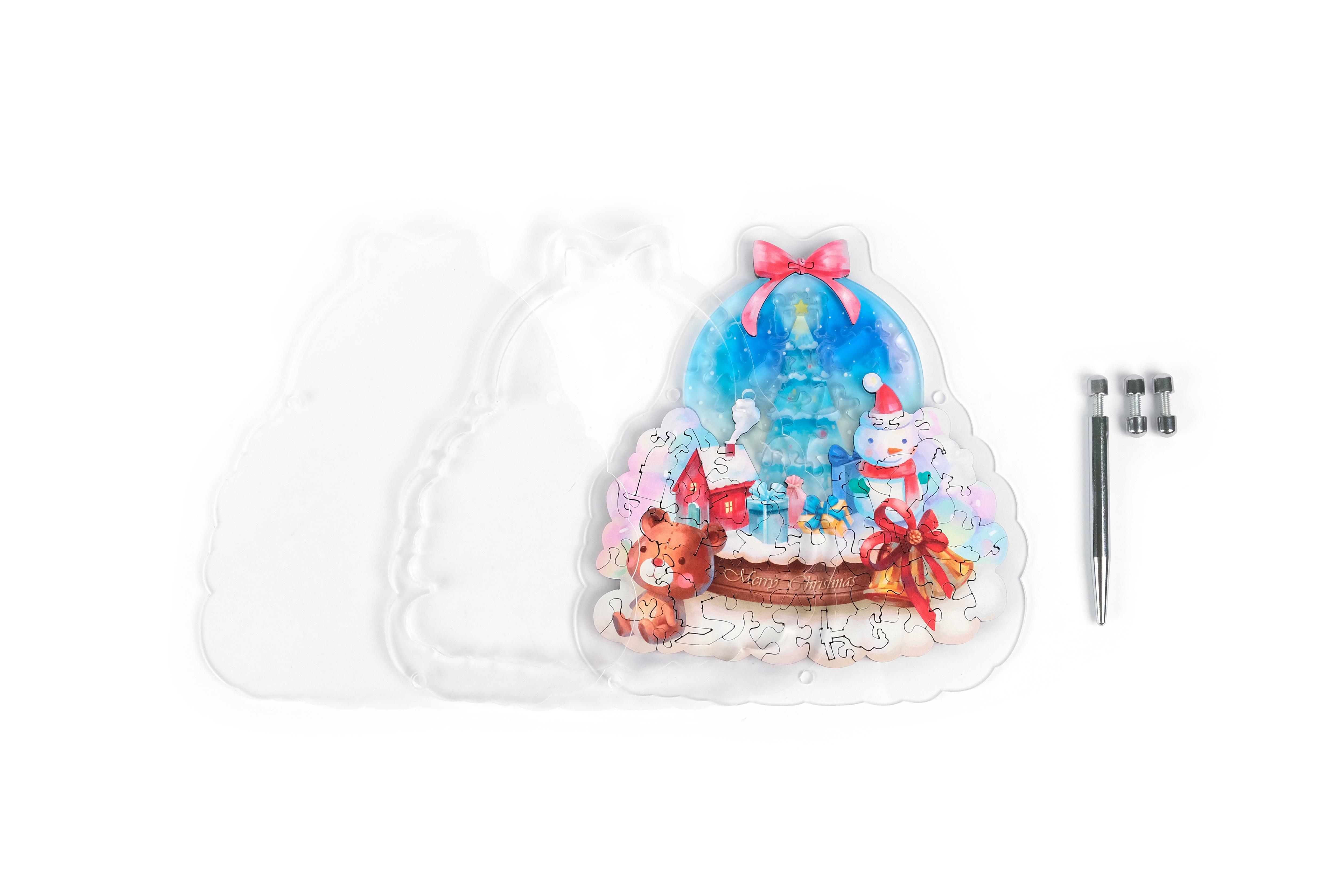 專為「聖誕水晶球」複合拼圖設計的造型壓克力雙面展示框
