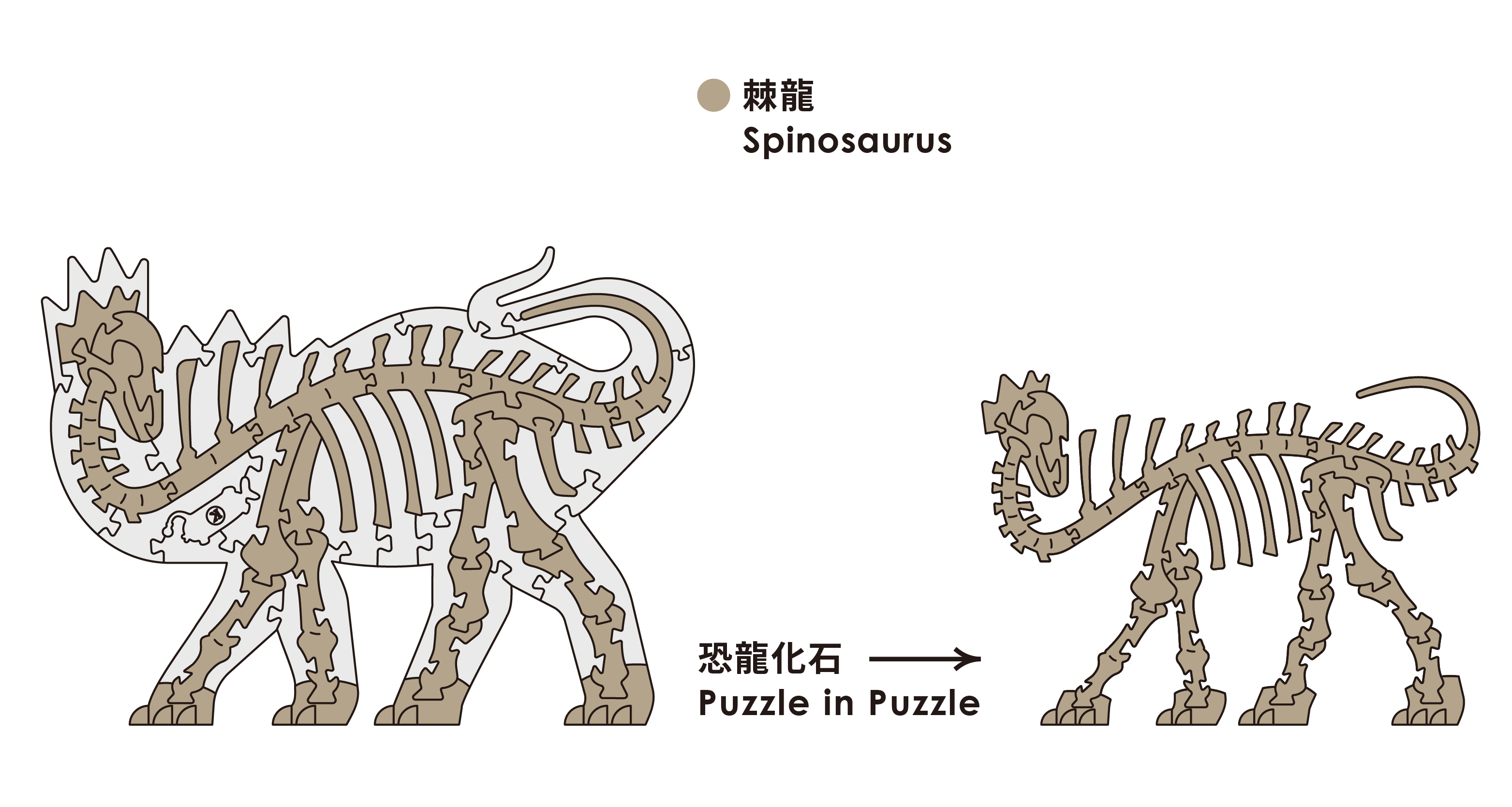 以流暢的刀模線條巧妙結合拼圖與恐龍化石,拼圖過程中彷彿回到白堊紀時期恐龍統治的世界