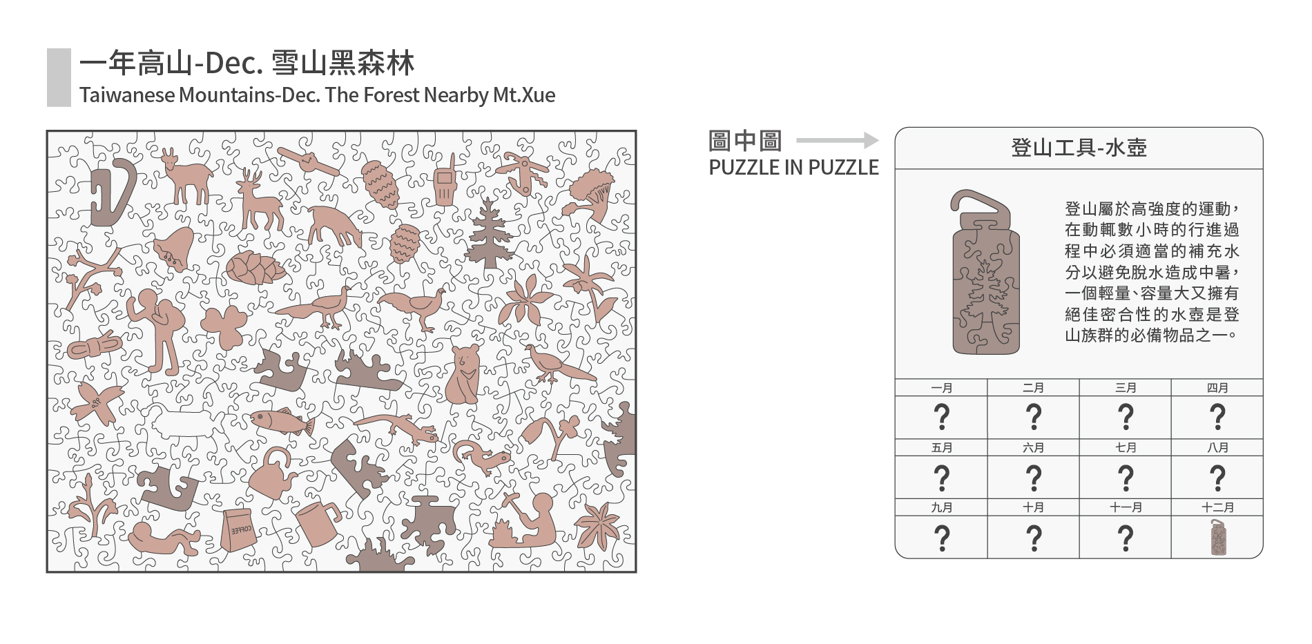 產品資訊品名:一年高山-Dec. 雪山黑森林 木質拼圖