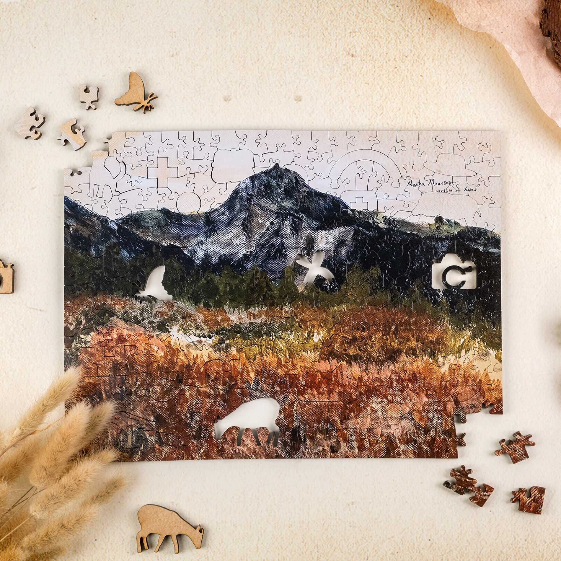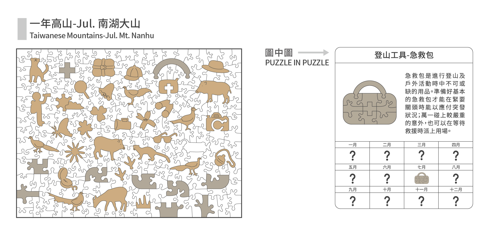 產品內容:木質拼圖250片、說明書x1、補缺片卡x1、小卡x1、天地紙盒x1