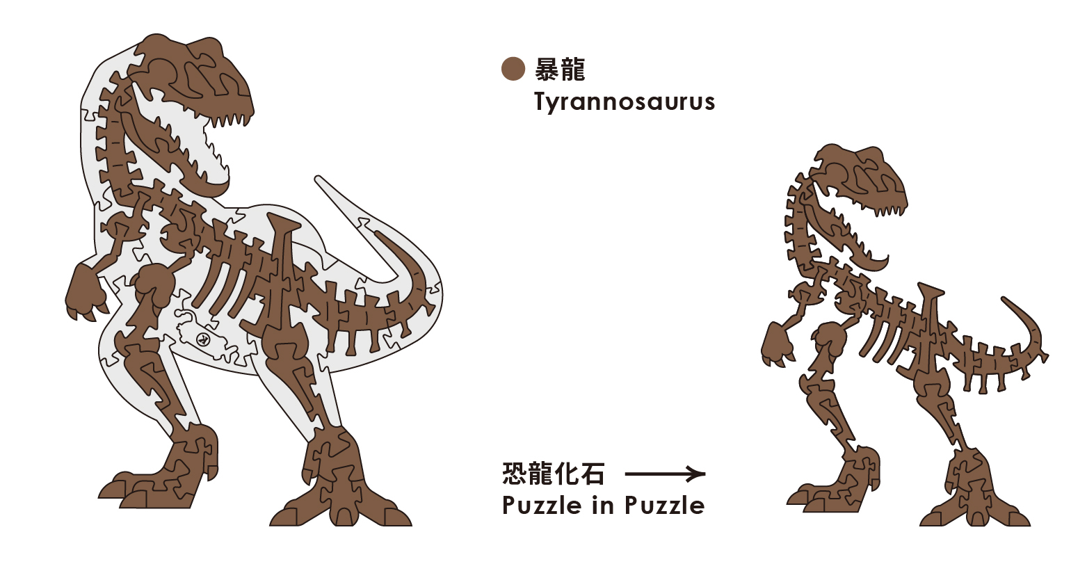 以流暢的刀模線條巧妙結合拼圖與恐龍化石,拼圖過程中彷彿回到白堊紀時期恐龍統治的世界