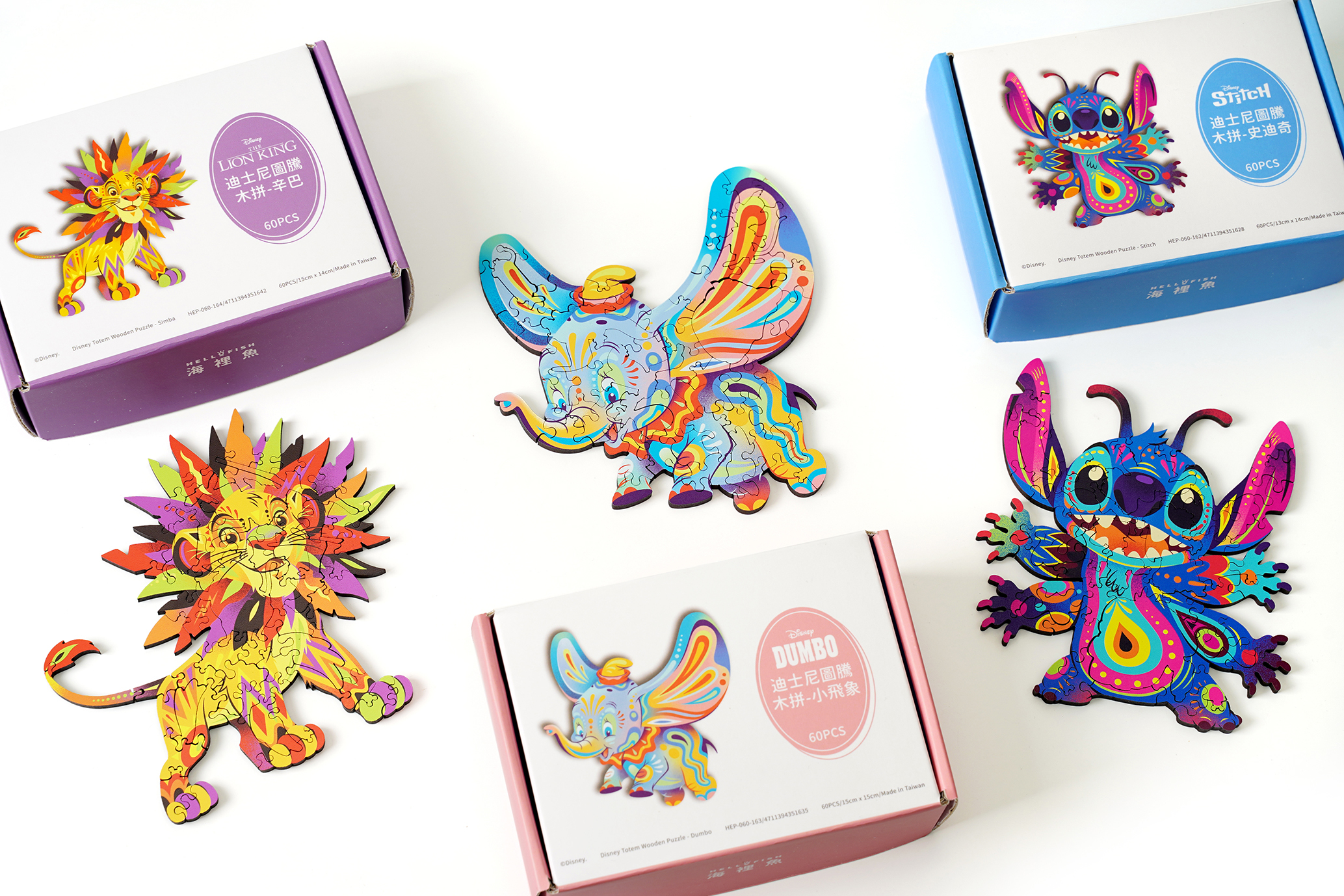 墨西哥圖騰的鮮豔色彩,搭配海裡魚獨特的木質拼圖設計,重新詮釋我們心愛的經典迪士尼角色。