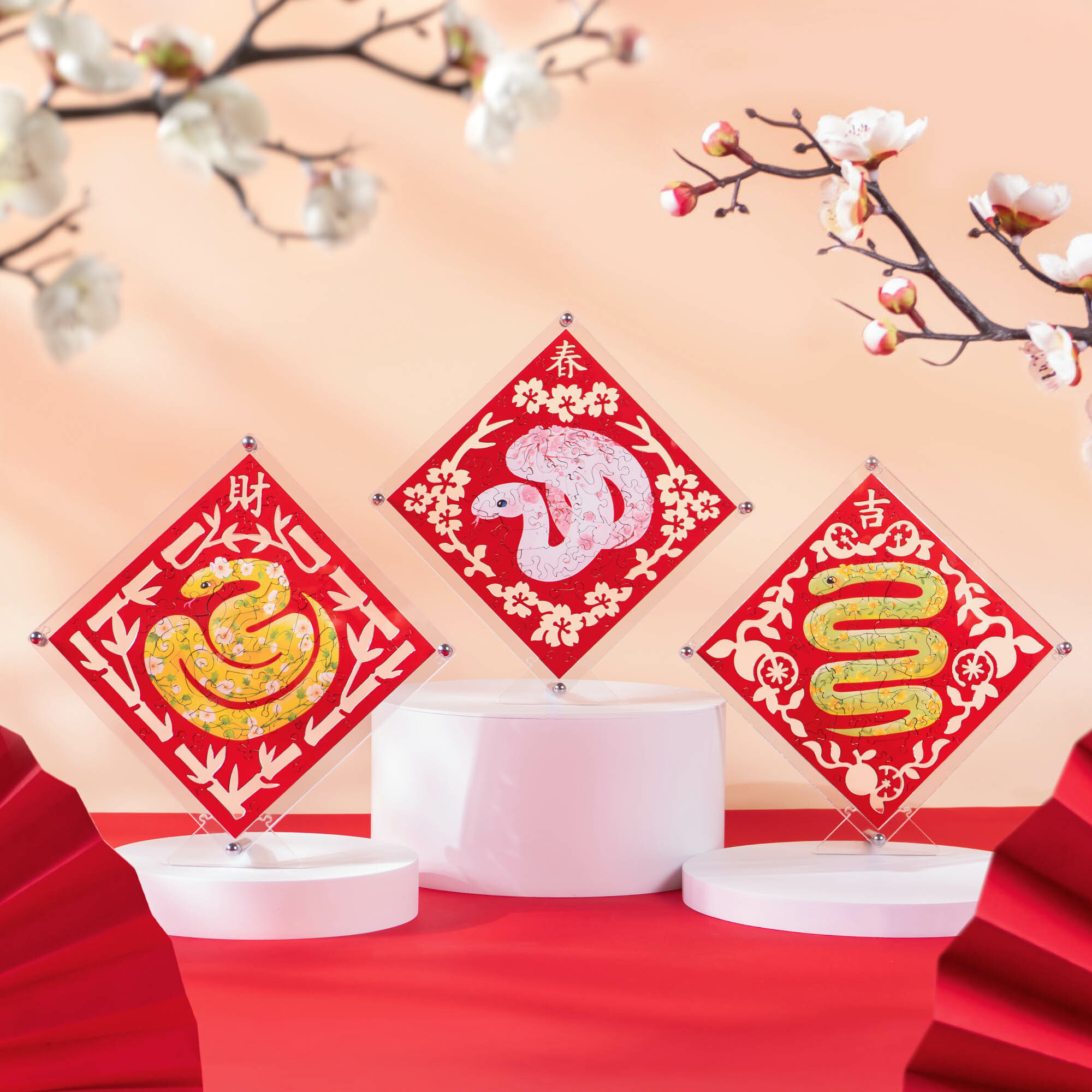 象徵春天的櫻花結合吉祥的白蛇,願你年年如意、歲歲如春。