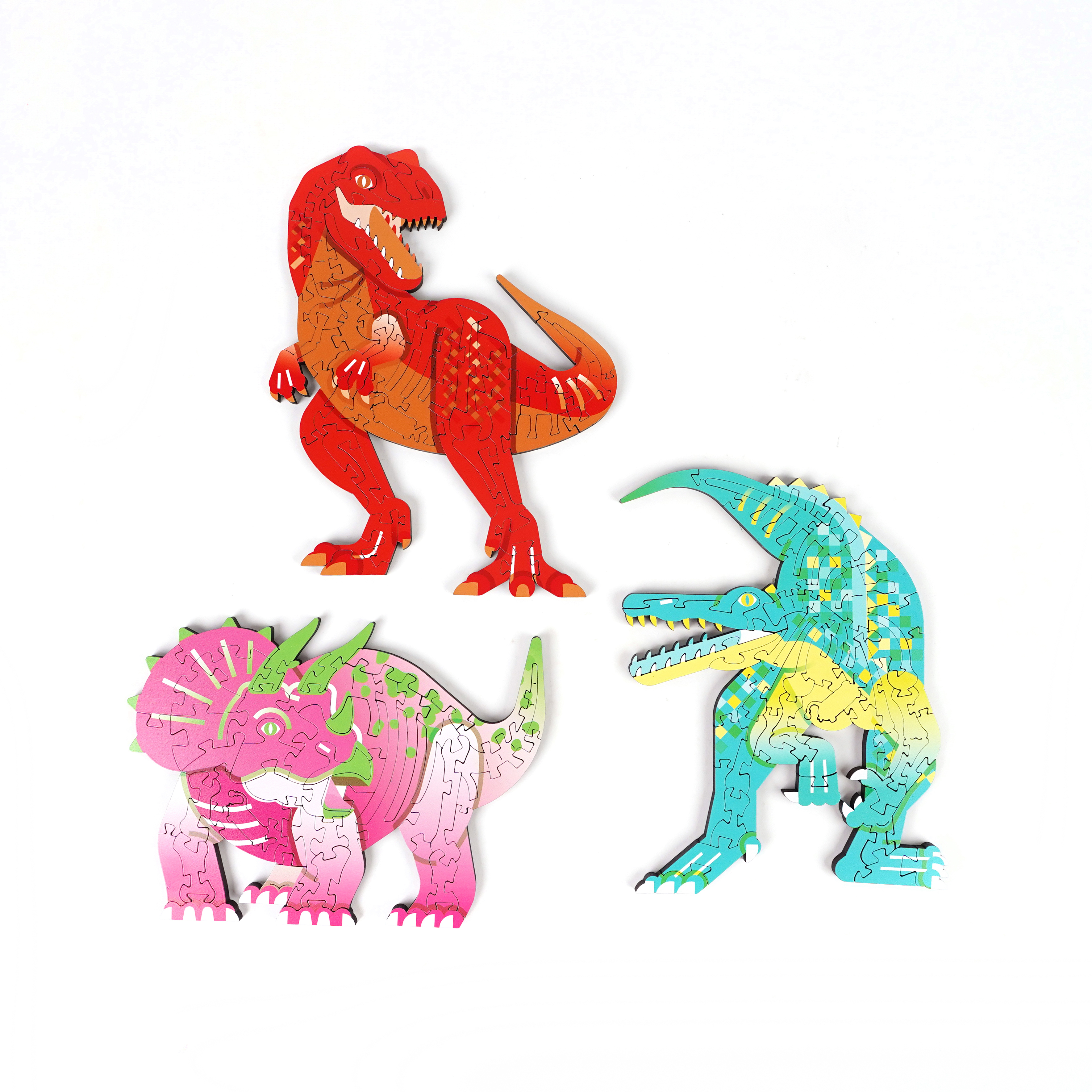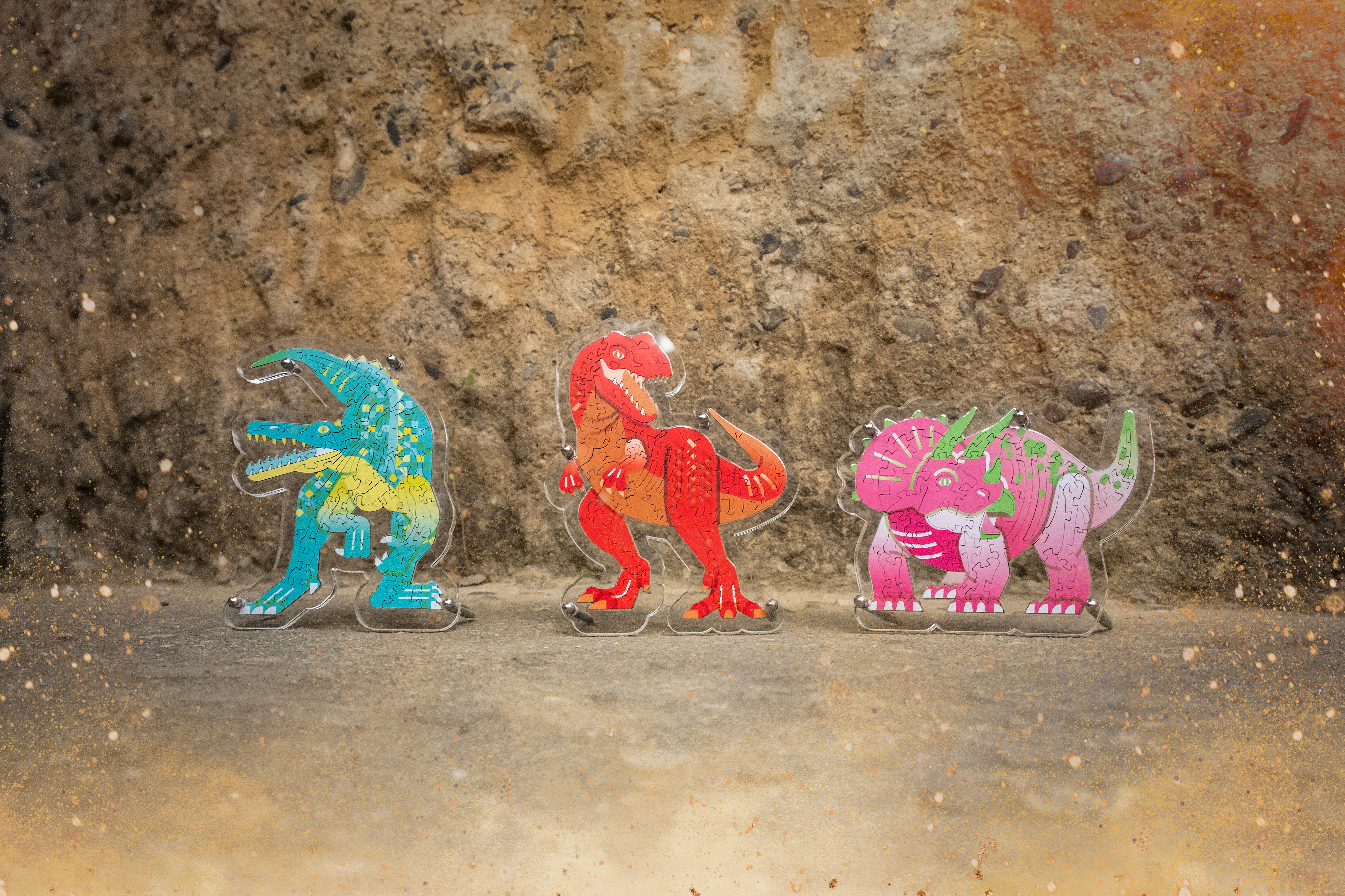 以流暢的刀模線條巧妙結合拼圖與恐龍化石,拼圖過程中彷彿回到白堊紀時期恐龍統治的世界